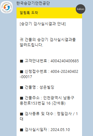 승강기 정밀검사 합격하였습니다. > 갤러리